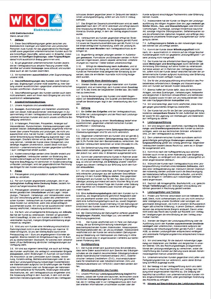 Elektro Technik Haidinger – Andreas Haidinger aus Stroheim in OÖ  »  AGB
